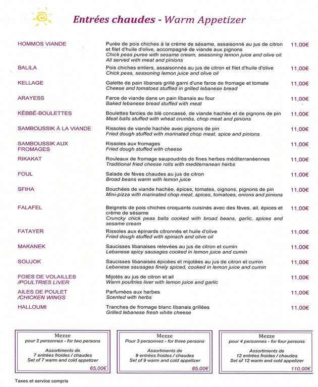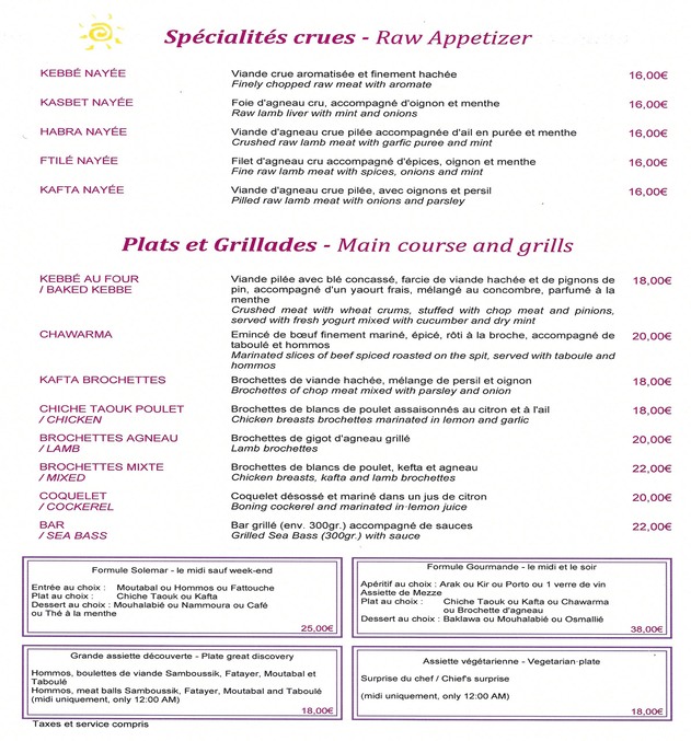 Restaurant Libanais Solemar 56, Rue Poussin 75016 Paris (Métro Porte d’Auteuil) Téléphone : 01 46 51 47 99