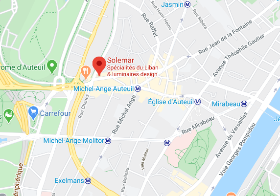 Restaurant Libanais Solemar 56, Rue Poussin 75016 Paris (Métro Porte d’Auteuil) Téléphone : 01 46 51 47 99